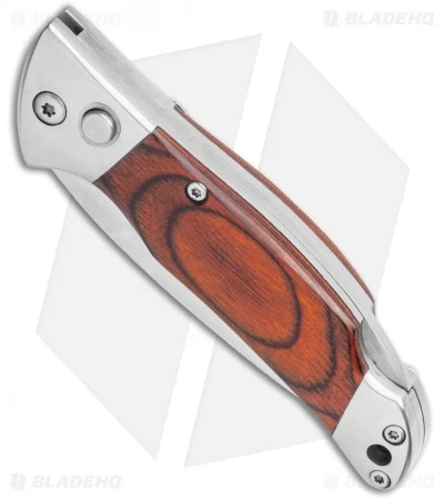 This is a compact automatic knife from Bear and Son. The high carbon stainless steel is strong and very sharp. The blade is a drop point shape with a hollow grind. Stainless steel bolsters top off this classic design.