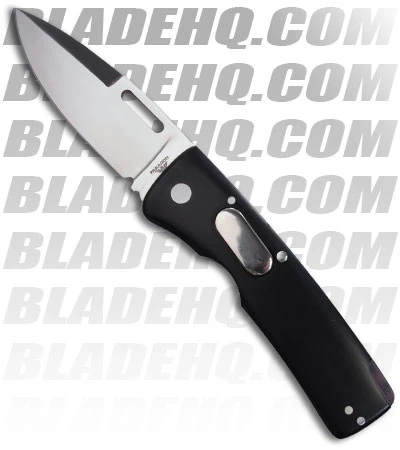 This Blackie Collins designed lockback folder from Paragon has been converted to an automatic. The dual action means you can opt for manual opening with the thumb hole or push the firing button for effortless blade deployment. AUS-8 stainless steel blade and black Micarta handle.