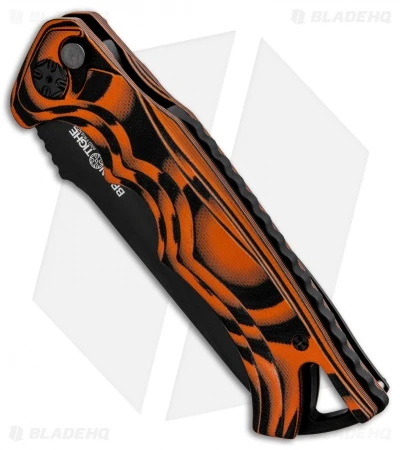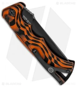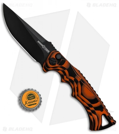 This Large Tighe Fighter automatic model has a black drop point blade and a black/orange G-10 handle.
