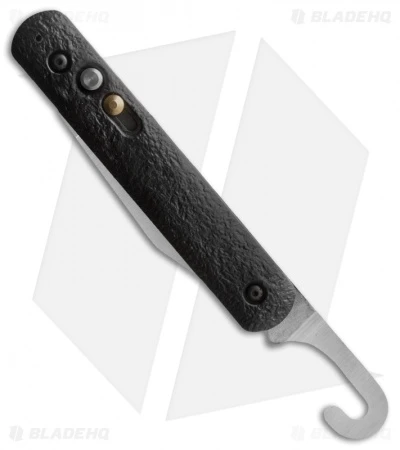 This M-724 automatic knife by Colonial Knife Company features a brass sliding safety and is equipped with a pocket clip. Includes a rescue hook and an automatic blade with a plain edge. It is made for use in emergency survival conditions. The M-724 consists of a hook belt cutter blade on one end and an automatic blade on the other end. The blade is opened by a release button and held in place with a slide lock while the rescue hook has a nail nick for opening. The steel is 1095 HC and the handle is black ISOPLAST with sliding safety.