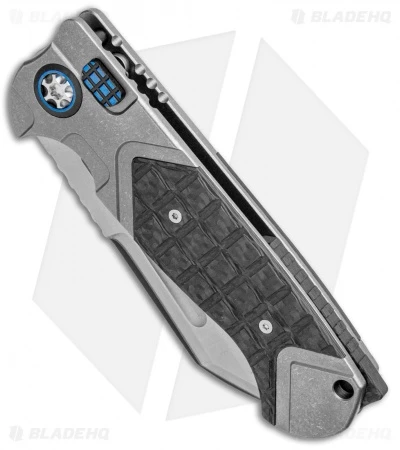 ADV and Heretic Knives have teamed up to offer you a fantastic fully automatic version of the Andre de Villiers Butcher. This model is built with a San Mai blade and a titanium handle with frag carbon fiber scales and blue titanium hardware. Item includes a tip-up roller ball clip.