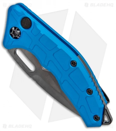 This Martyr Auto model features a Black DLC finished tanto blade made from 154-CM stainless steel. It has a blue aluminum handle with an all-black pocket clip, backspacer, and hardware.