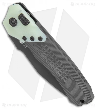 - Integral carbon fiber handle scales with jade G-10 bolsters.