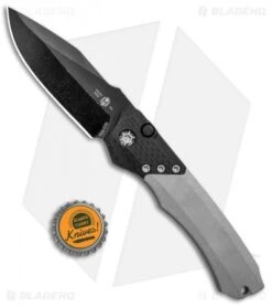 This Wraith automatic model features a black finished blade made from 154CM stainless steel. It has a single piece aluminum handle in a Battleworn finish and a carbon fiber bolster.