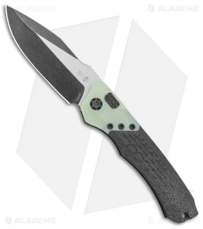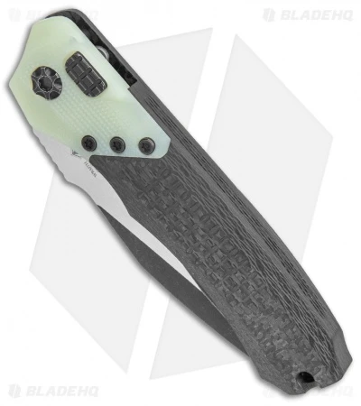 - Battlword black carbon fiber handle scales with jade G-10 bolsters.