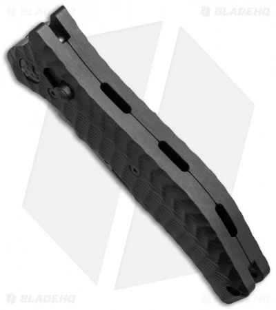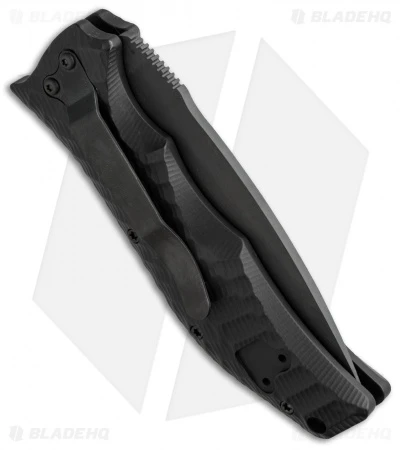 The HTM Gun Hammer automatic knife is modeled after Darrel Ralph’s custom design. The Gunhammer auto has smooth hard-hitting action and solid confidence inspiring lockup. The ergonomic tactical ETAC grip pattern handle is black anodized, 3D machined from aircraft grade aluminum. The Bowie style blade is CPM-S30V stainless steel with a DLC black finish. Comes in a padded black nylon pouch.