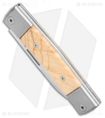 This model of the LionSteel BestMan 2 sports a satin drop point blade made from Bohler M390. The titanium handle has an olive wood inlay with titanium bolsters.