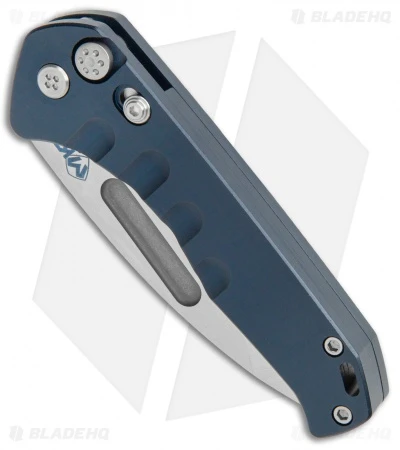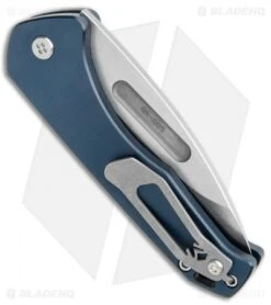 This model has a blue aluminum handle and a tumbled S35VN blade.