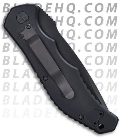 Stylish D. Ralph design. The 18 Xray series features a black DLC coated 154-CM drop point blade with serrated edge. The handle is black anodized 6160 aluminum and is contoured to provide a good fit in the hand. The pocket clip is reversible for tip or top down carry. The Xray’s firing button features an integrated safety- it must be slid forward before it can be pressed down so it can’t fire by accident (a very cool design). A very solid knife that would make a great user.