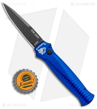 The Piranha Mini-Guard is part of the Bodyguard knife series. These knives put a contemporary spin on classic stiletto styling and fire hard and fast. The Mini-Guard has an anodized 6061-T6 aluminum handle with the firing button on front and a titanium clip on back for tip-up carry. The blade is premium CPM-S30V stainless steel.