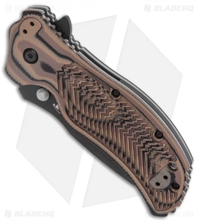 - Aftermarket “Hyena Brown” G-10 front handle scale.